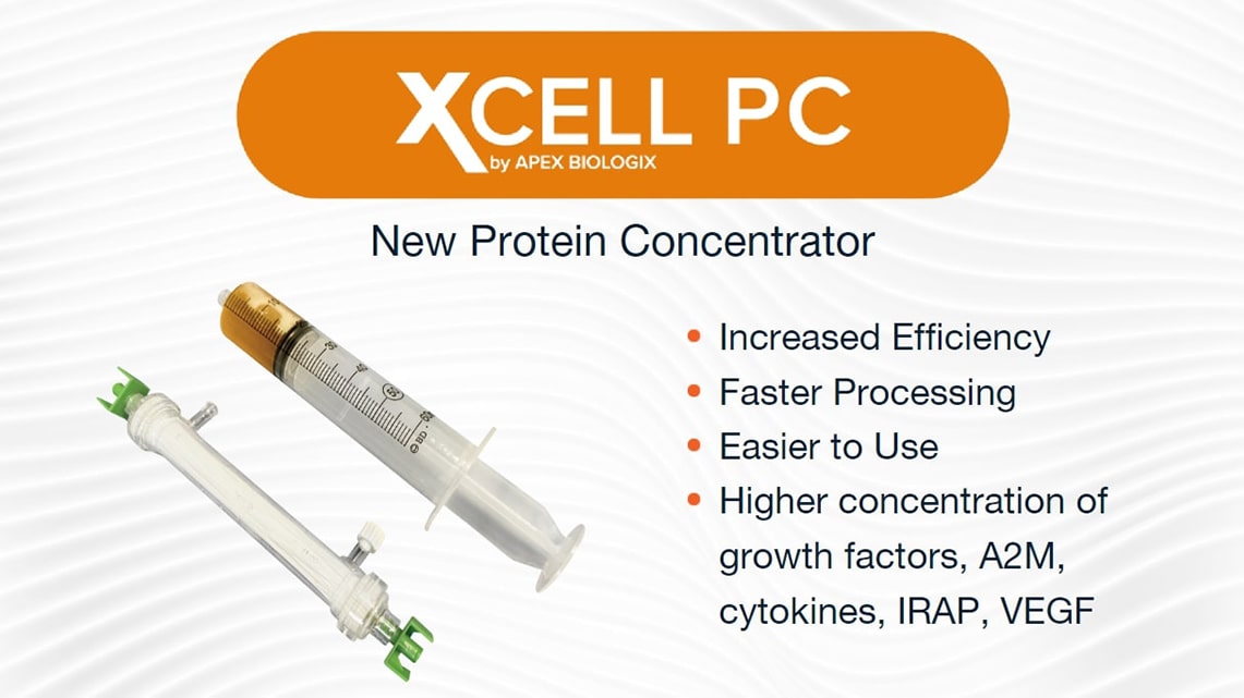 WOOD CROSS, UTAH DEC 2, 2022. APEX Biologix, a leader in innovative biologic medicine, announced their exclusive industry-leading XCELL PC (Protein Concentrator) Kit, now available for purchase. Utilizing components of platelet-poor plasma has become one of the fastest growing segments of regenerative medicine. The advanced features of the XCELL PC kit allow for increased concentration of a variety of beneficial proteins, with easier use and reduced processing time compared to earlier generation blood and plasma filters on the market. Through this innovative design, significant increases are attainable in the retention of platelet-derived growth factors, A2M (Alpha 2 Macroglobulin), IRAP, fibrinogen, and other cytokines, all of which have demonstrated beneficial in reduction of inflammation and pain and/or the suppression of joint degeneration by inactivation of destructive enzymes.